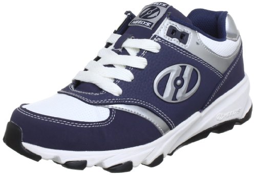 Heelys Surge. Navy/White/Silver/Black Introducing and all-new ultra lightweight EVA outsoleMulti-layered synthetci mesh and synthetic leather upperMoulded Heelys logo on quarter panelFATS low profile wheel with ABEC 1 bearings