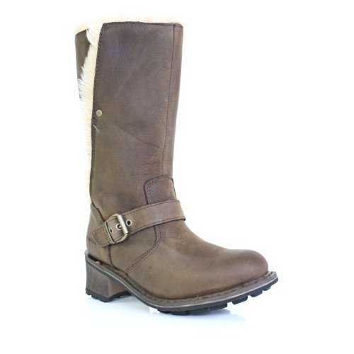 - Key Features:Caterpillar Branded, Anna Boots in Fern Brown Leathers with Fur Trim. Biker Boot Style